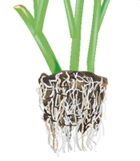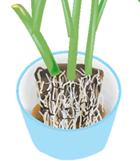 (3)根鉢の下をほぐすようにくずし株の周りの古い土を1/3程落としす。