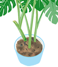 (1)モンテスラの株が大きく生長したら一回り大きな鉢に植え替えます。だいたい2~3年に1回が植え替えの目安です。